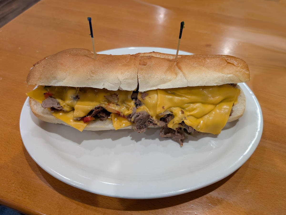 Cheesesteak 📷11.00➤ With Onions.12.00➤ With Mushrooms.12.25➤ With Peppers and Onions.12.50➤ With Peppers, Onions and Mushrooms.13.00➤ Add 50¢ for garlic bread.