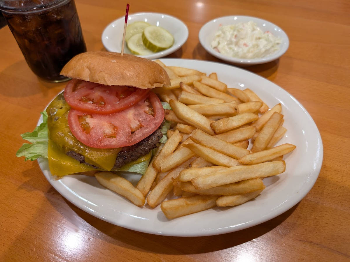 All hamburgers are made with lettuce, tomato and onion. Cole slaw & pickle upon request. Add french fries to any burger for $3. Add curly fries, tater tots or onion rings for $4.50.