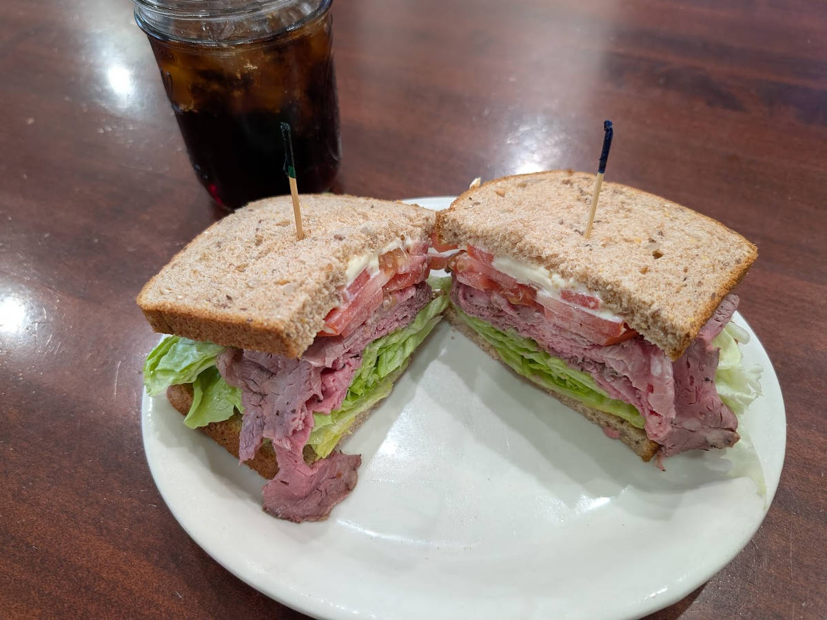Roast beef, turkey, swiss, coleslaw and russian dressing on rye.