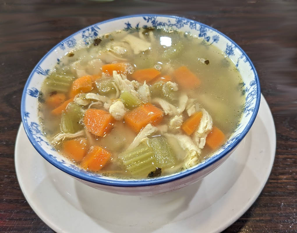 Made with 2 slices of french toast or 2 pancakes, 2 eggs (any style), 2 pieces of bacon or taylor ham or one sausage link or patty. Served with regular coffee or tea (dine-in only!).